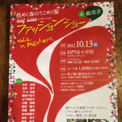 爾今の仲間、リーフモールド主宰、磯貝益子企画プロデュースのファッションショーが開催されます。
